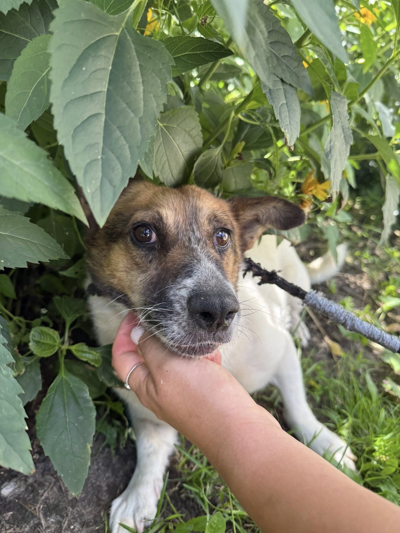 To, co od razu można o niej powiedzieć, to fakt, że Celinka nie wykazuje agresji. Nie szuka konfliktu, nie reaguje złością – jej tarczą obronną jest po prostu unikanie człowieka i zachowywanie dystansu. Daje się pogłaskać, pozwala usiąść obok siebie, ale widać, że cały czas towarzyszy jej niepokój.