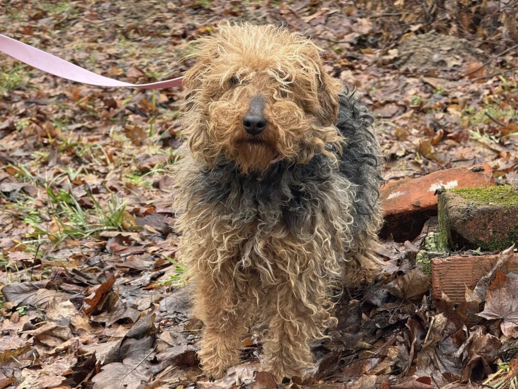 Walentynka to niezwykle urocza sunia w typie terriera, o którą przez wiele, wiele miesięcy nikt nie dbał. Jej sierść jest mocno skołtuniona, miejscami przypomina filc — ale mimo tego wszystkiego Walentynka nie straciła radości życia.